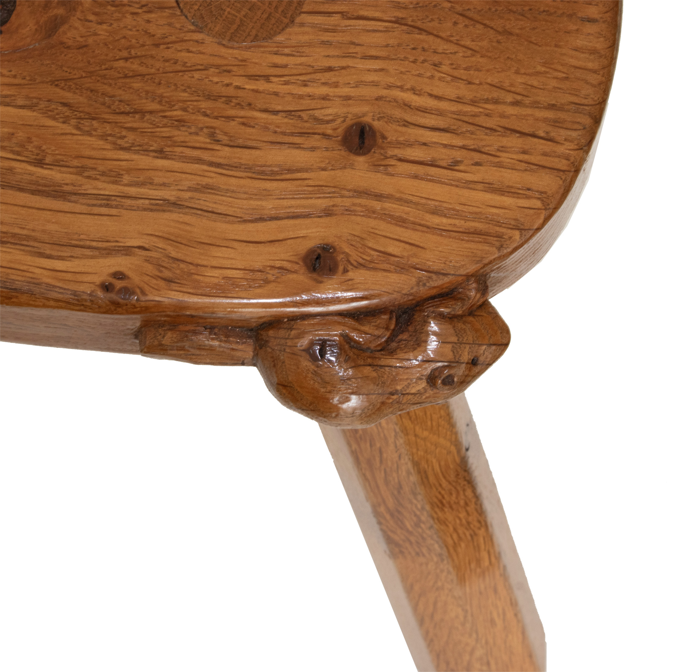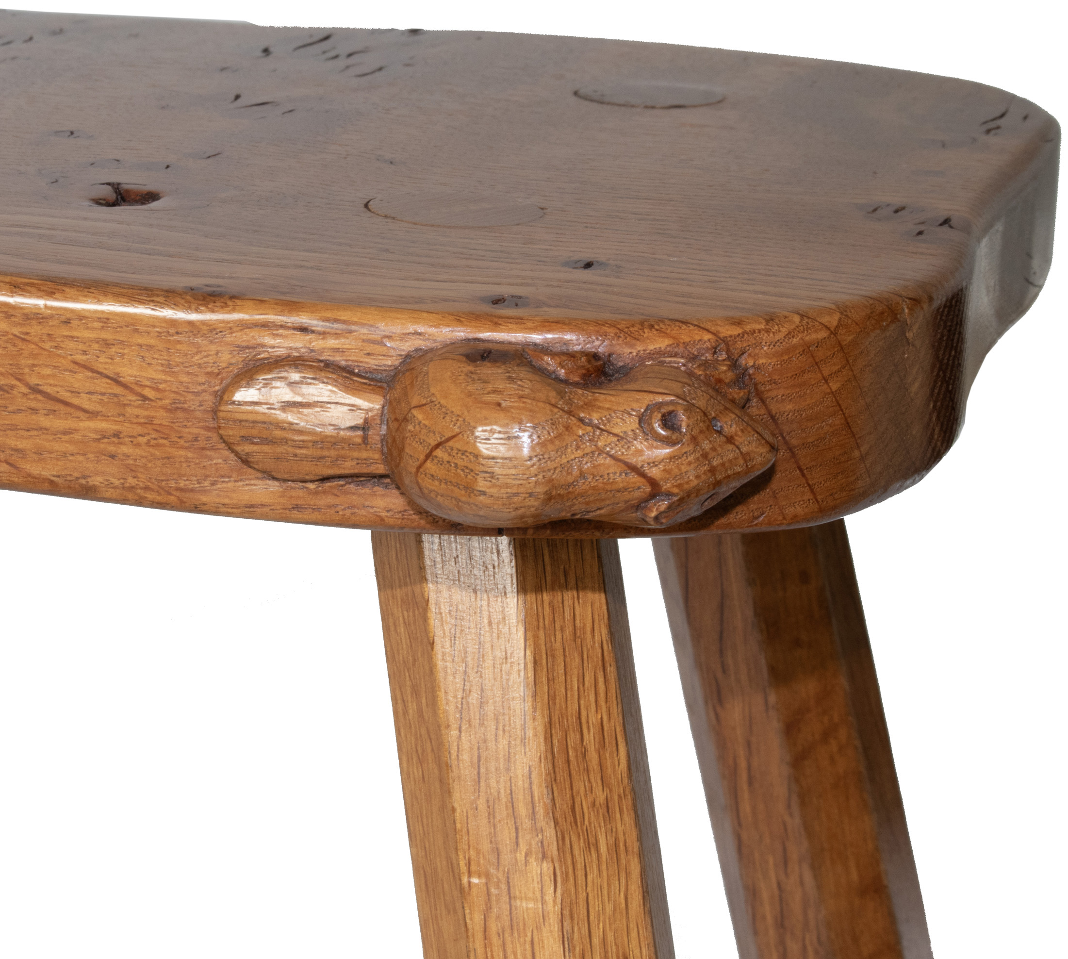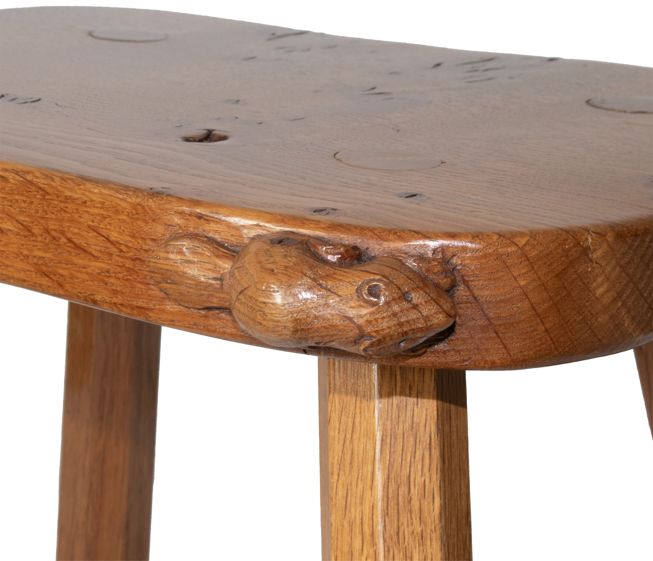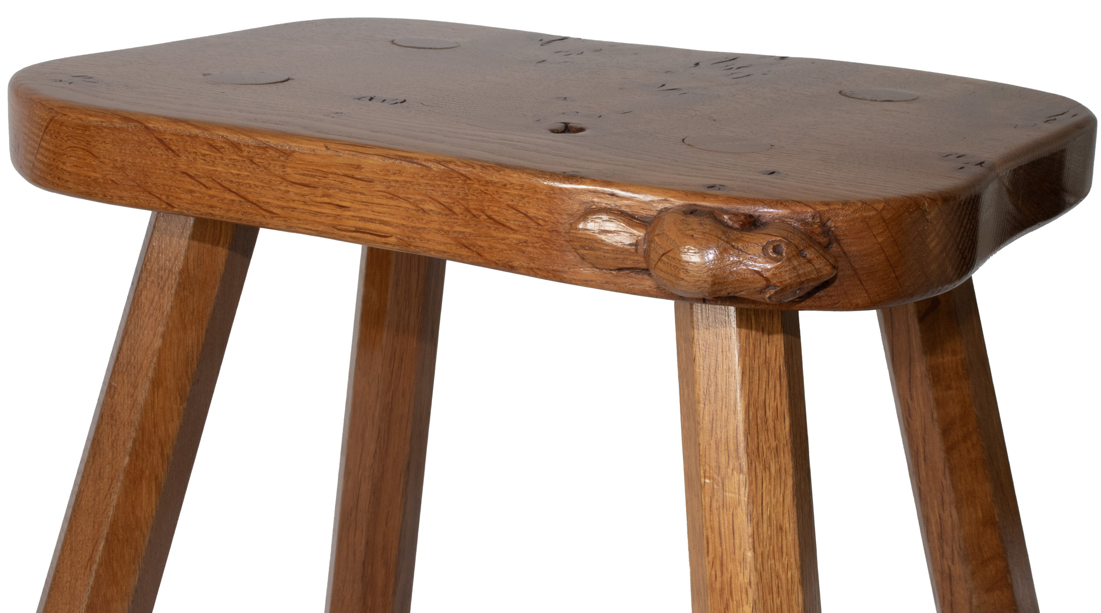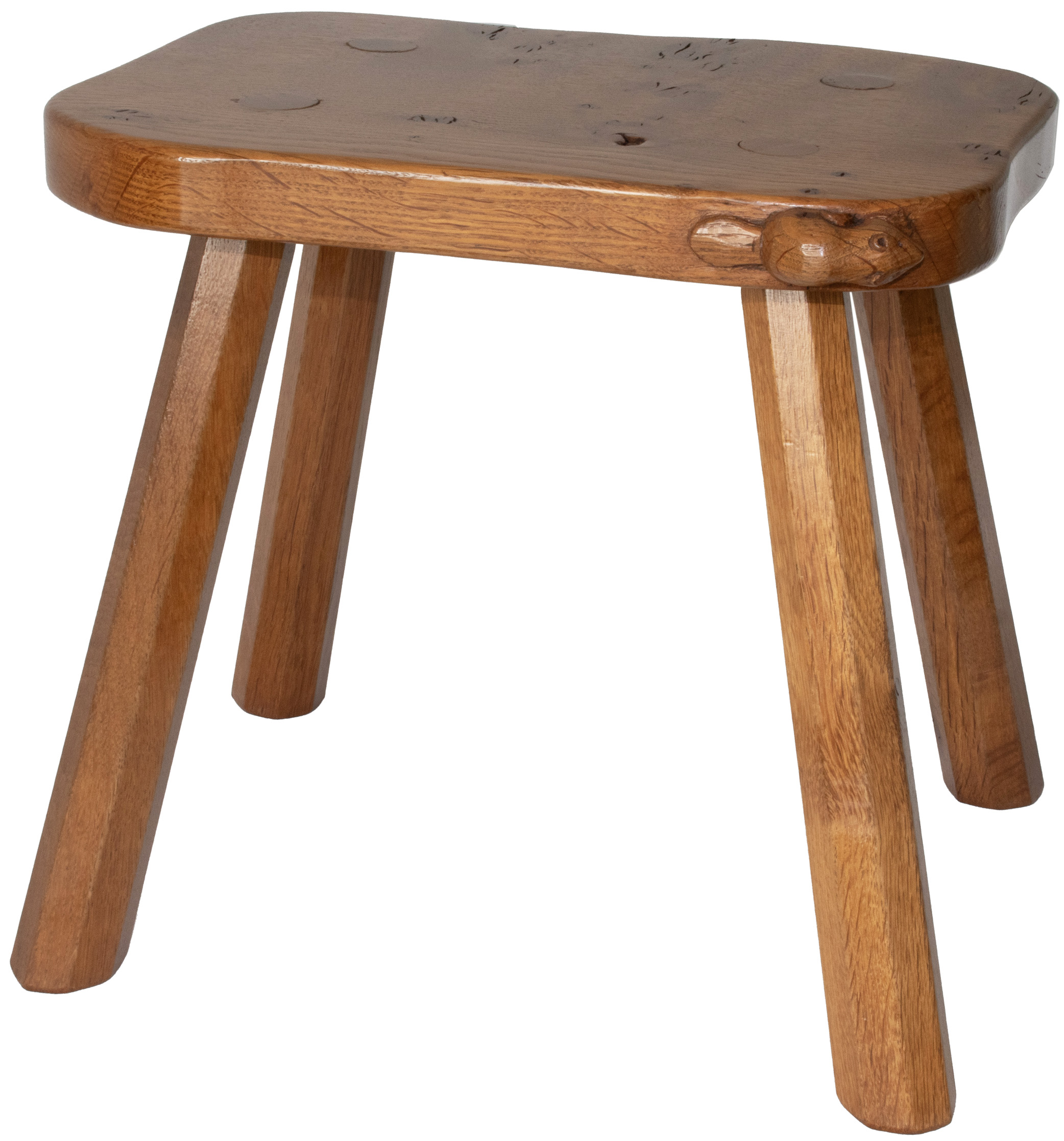 A Colin Almack, Beaverman 4 legged Stool with signature Beaver carved in high relief to the edge of the seat