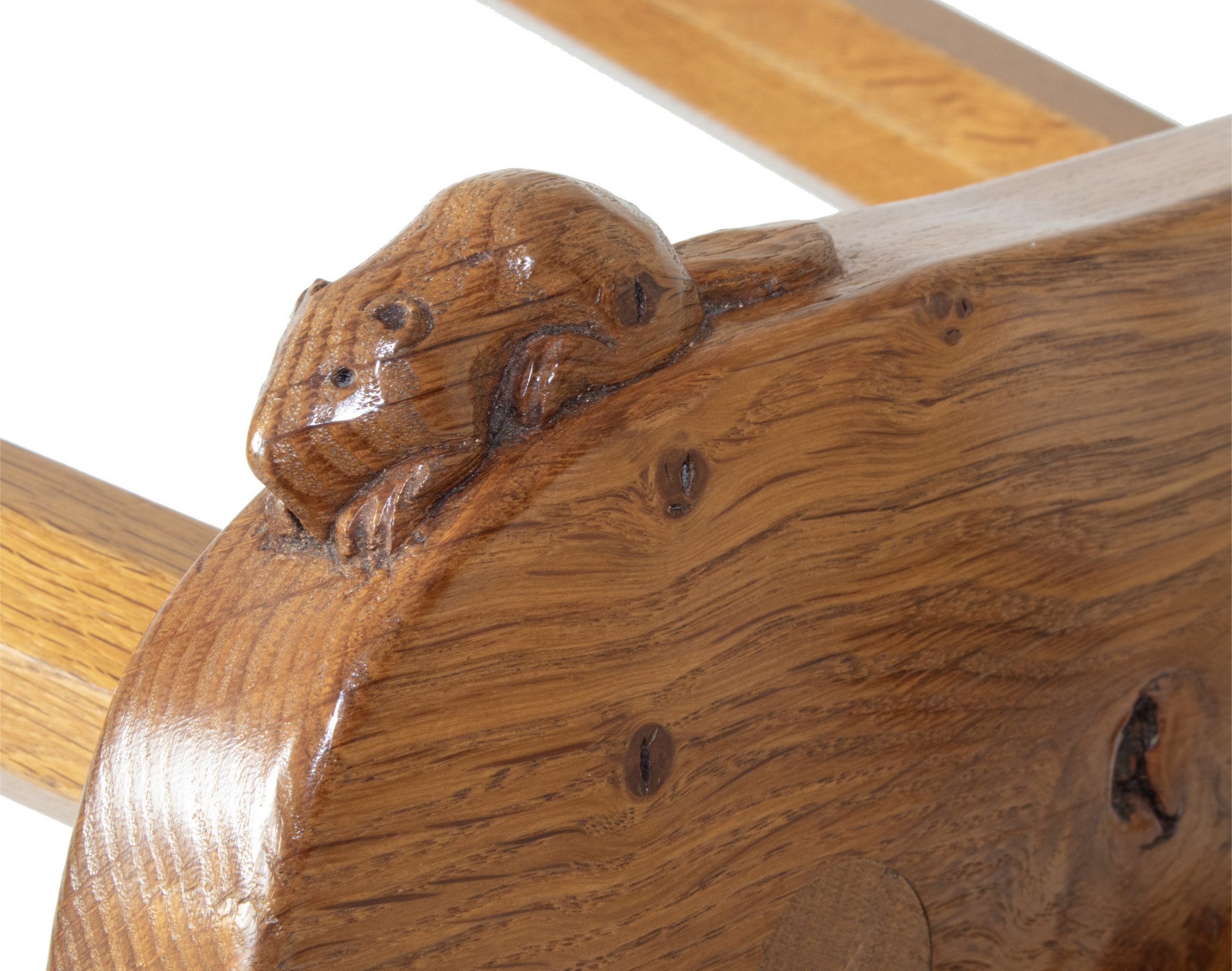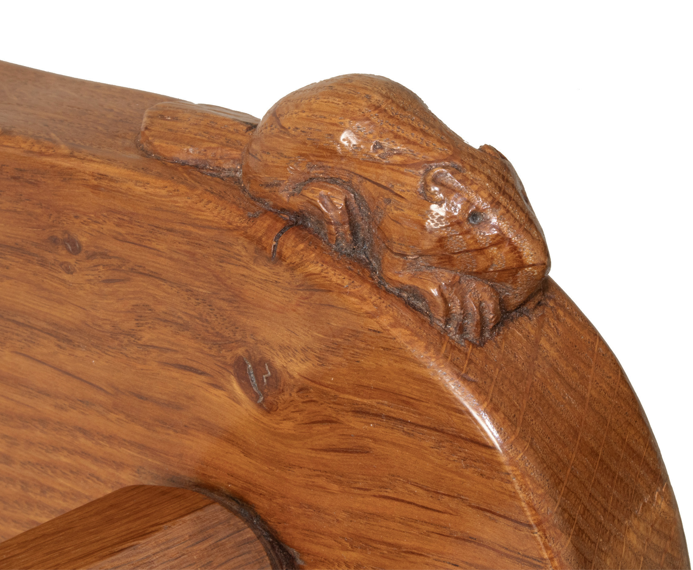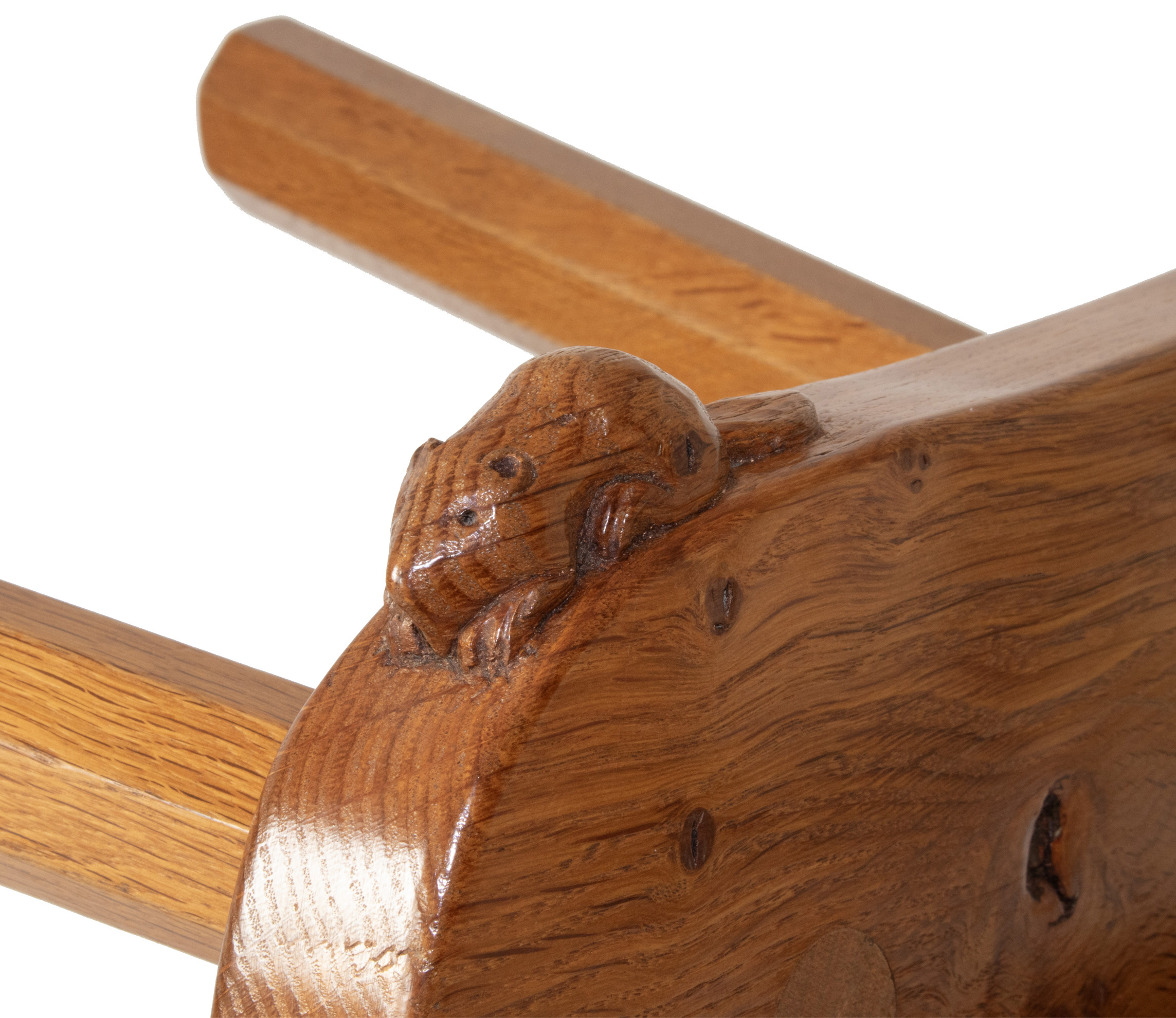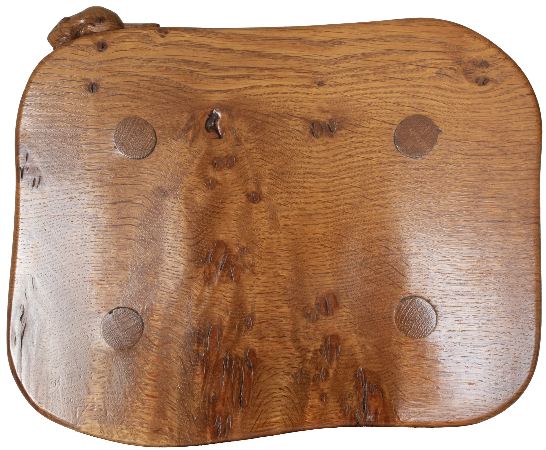 A Colin Almack, Beaverman 4 legged Stool with signature Beaver carved in high relief to the edge of the seat