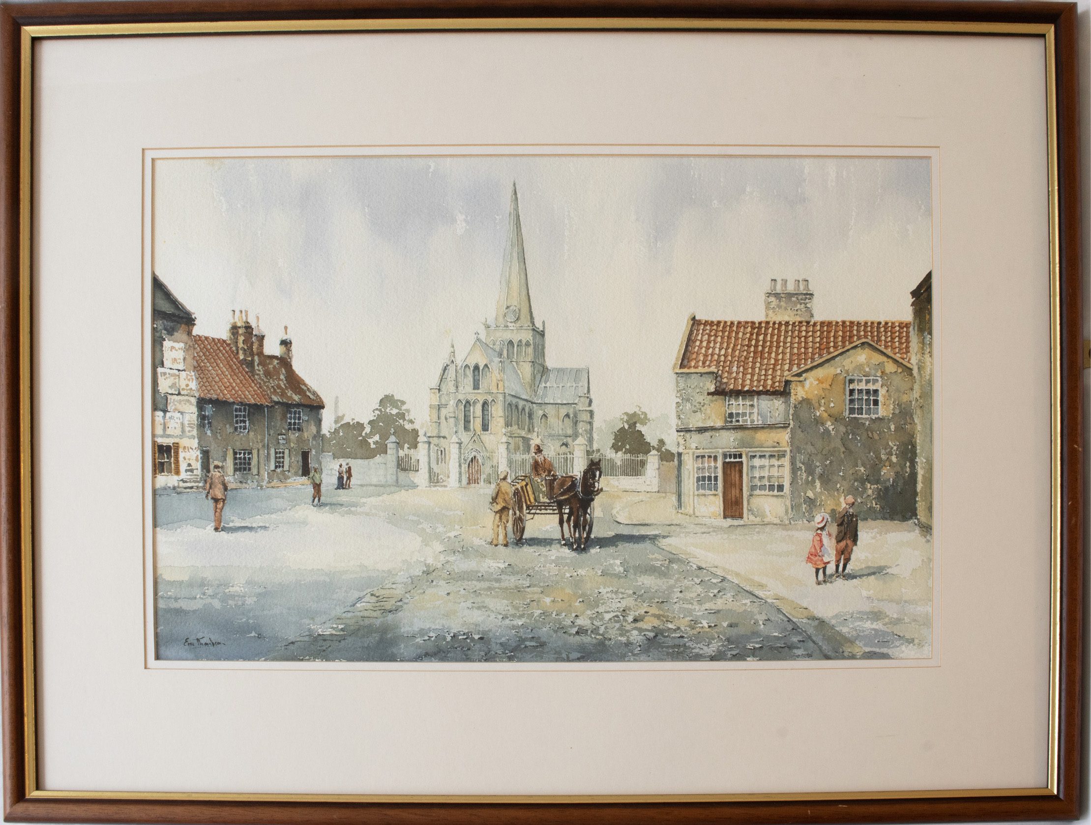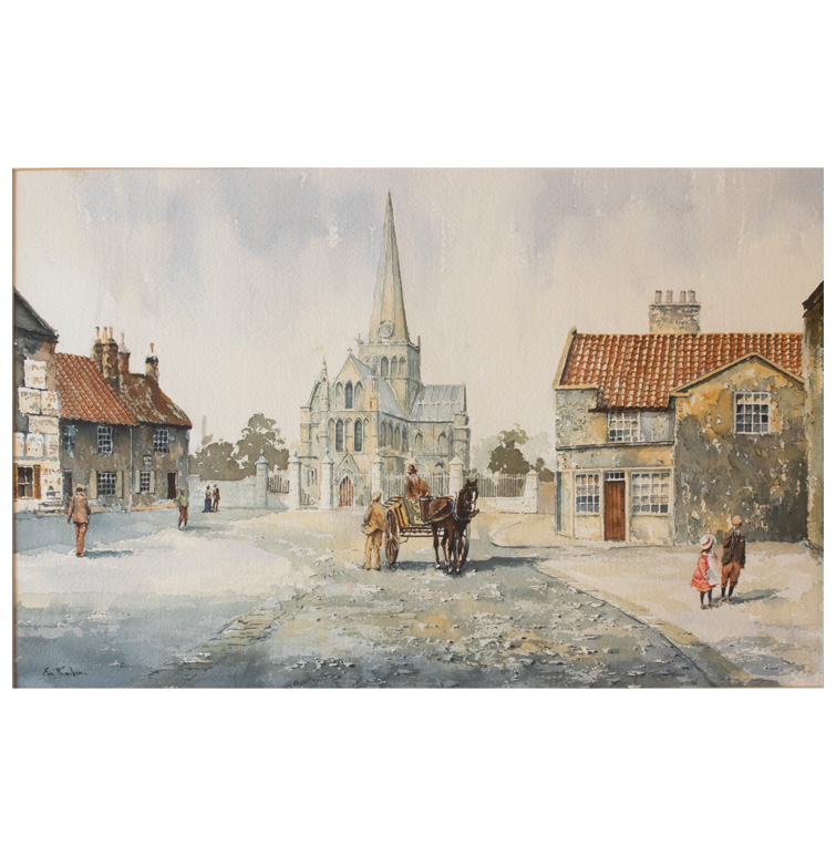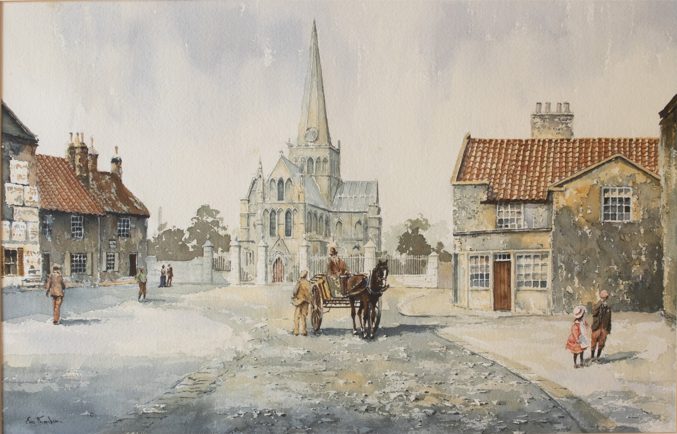 ERIC THOMPSON ST. CUTHBERT’S CHURCH DARLINGTON WATERCOLOUR