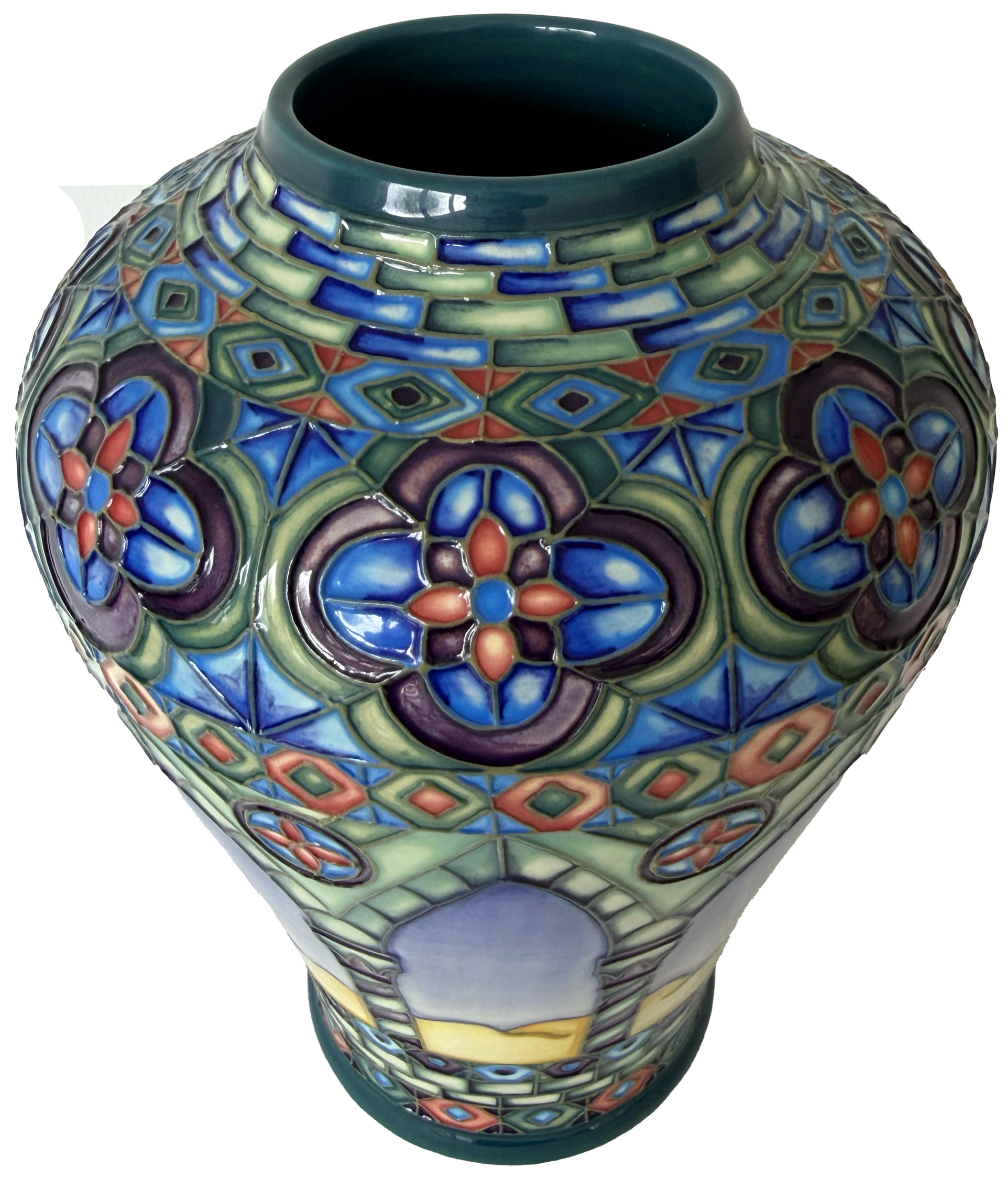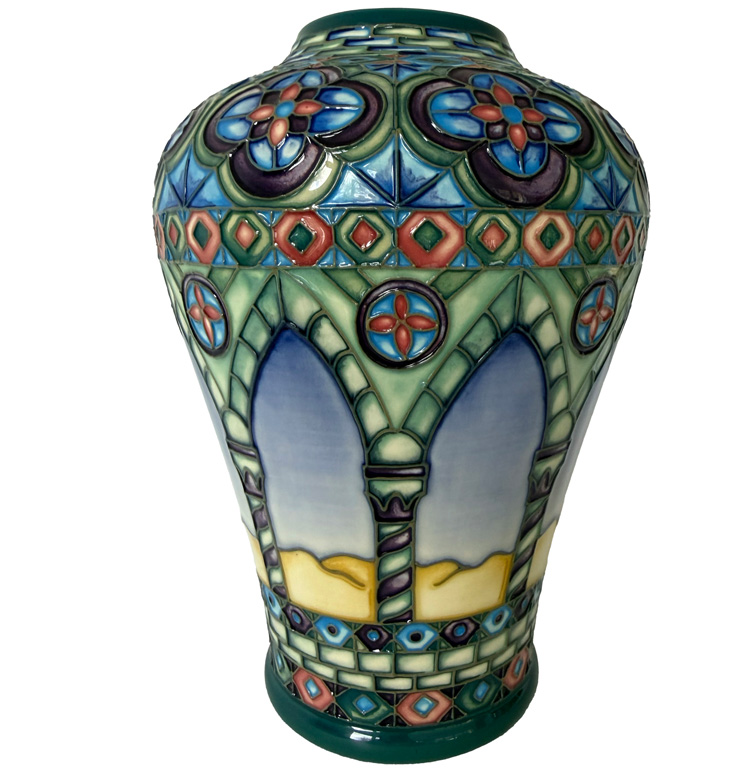 Moorcroft ‘Meknes’ Arabic Vase designed by Beverley Wilkes.  Meknes being one of the four imperial cities of Morocco