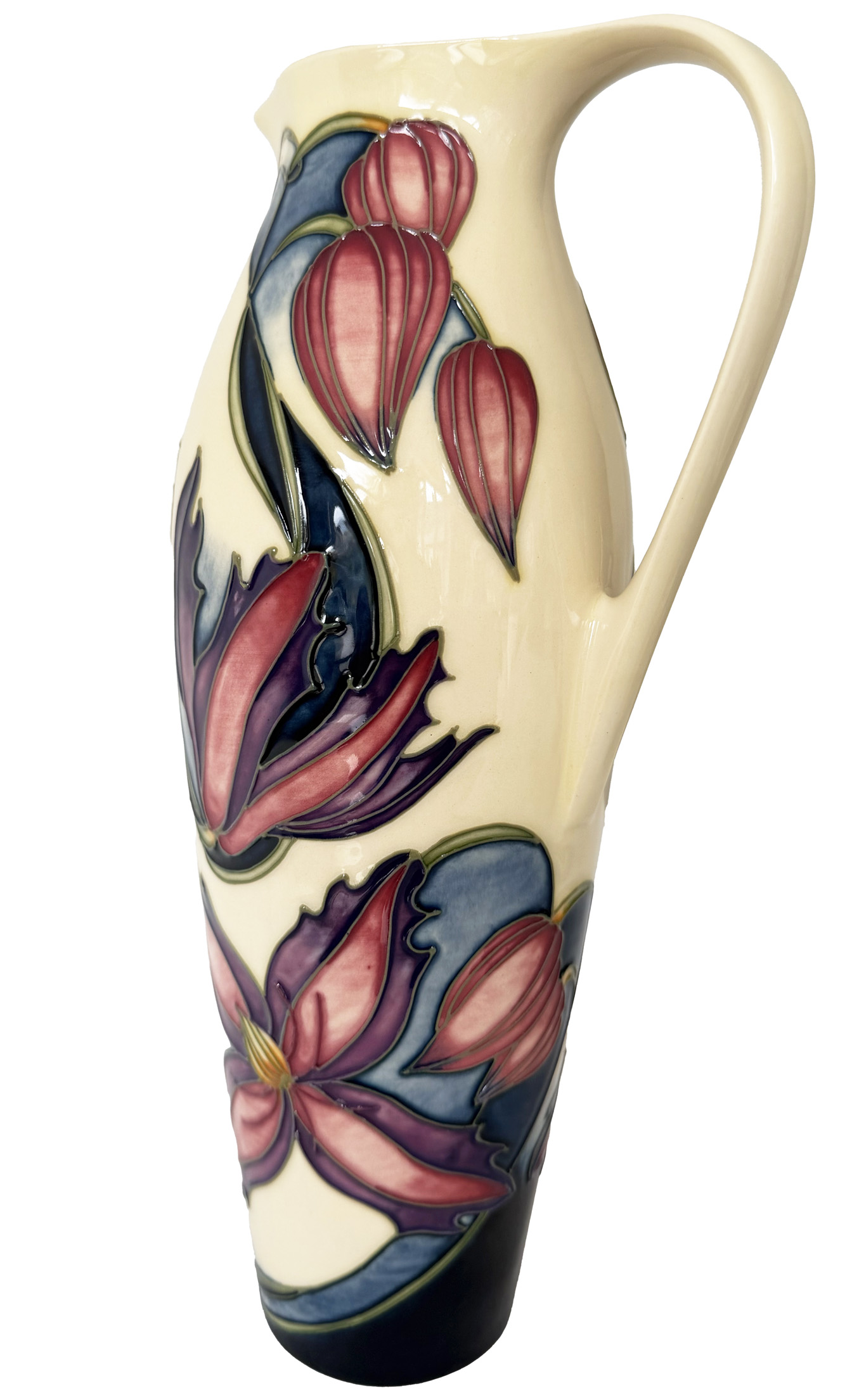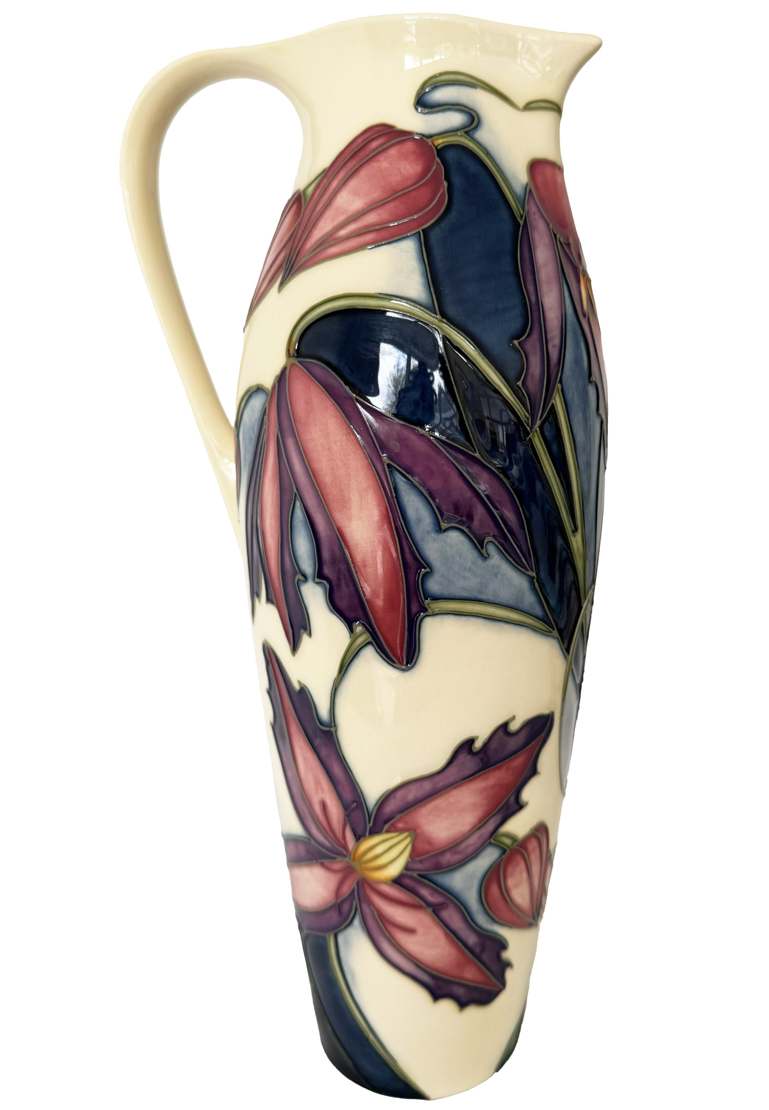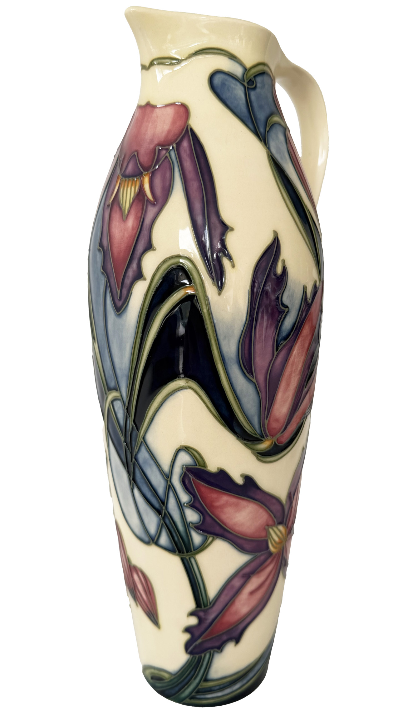 Moorcroft Wyevale Clematis Jug designed by Philip Gibson.  This was the inaugural outing of the new Moorcroft jug shape, JU5, also designed by Philip.