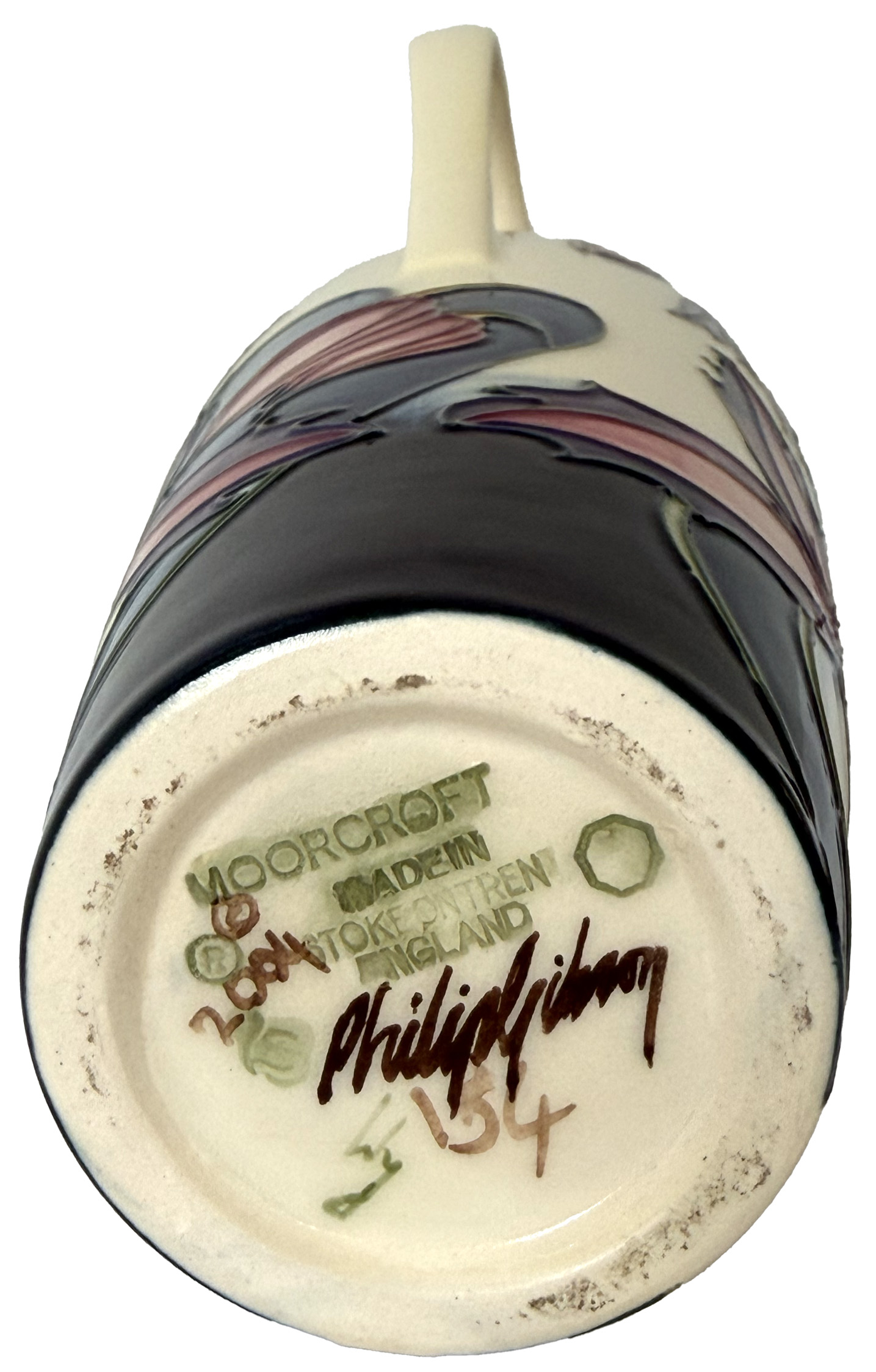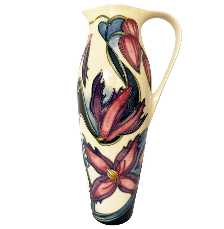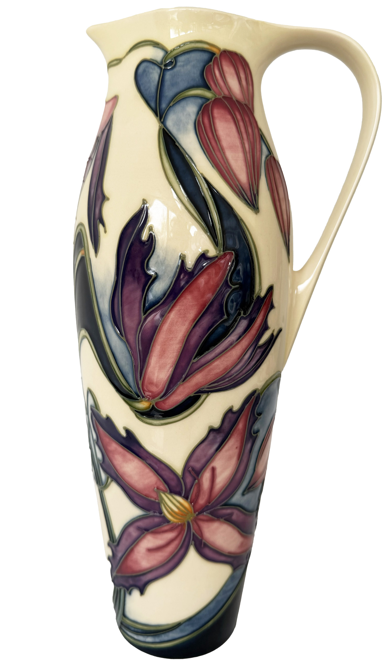 Moorcroft Wyevale Clematis Jug designed by Philip Gibson.  This was the inaugural outing of the new Moorcroft jug shape, JU5, also designed by Philip.