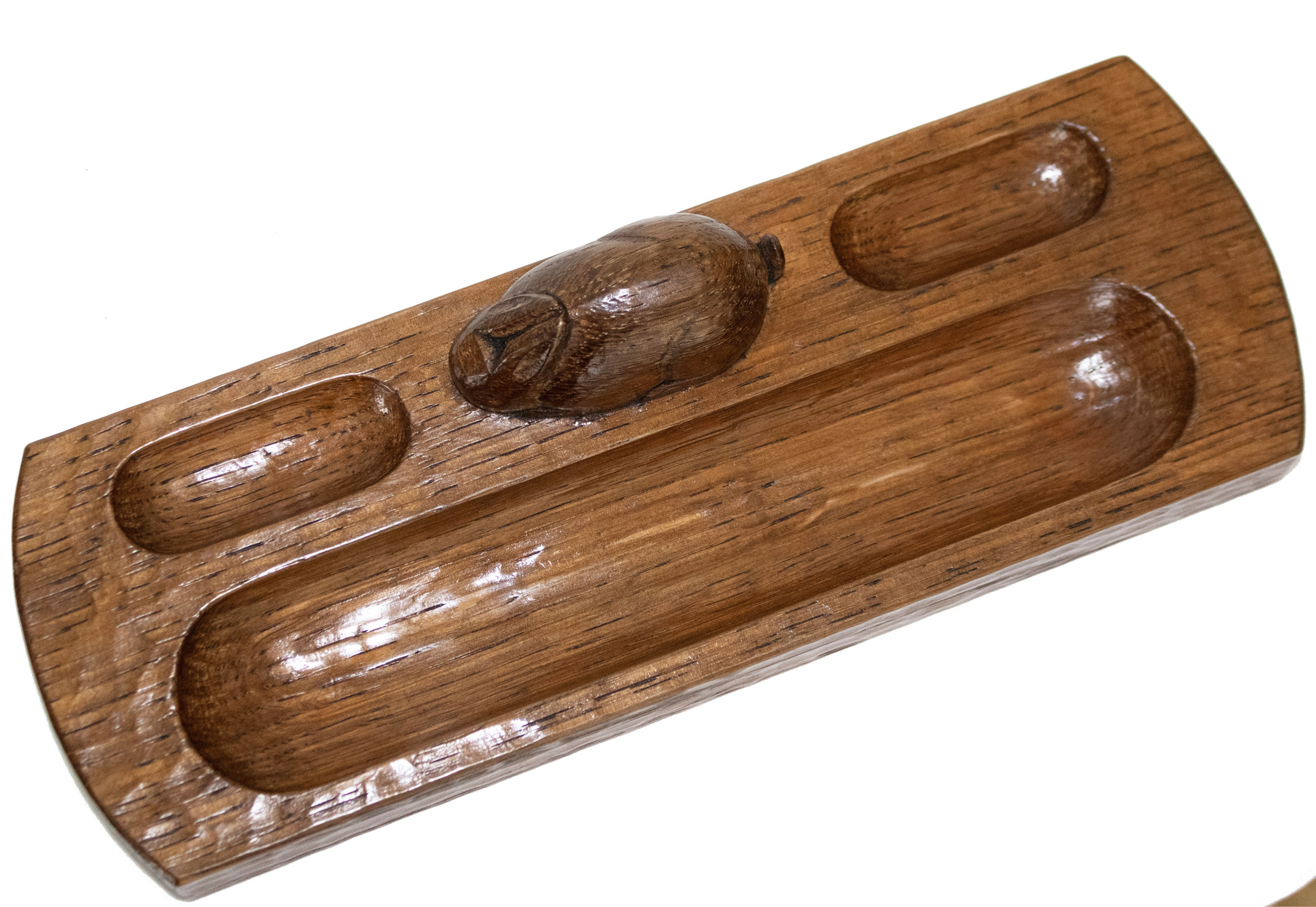 ROBERT MOUSEMAN THOMPSON OAK ADZED KIDNEY SHAPED TRAY