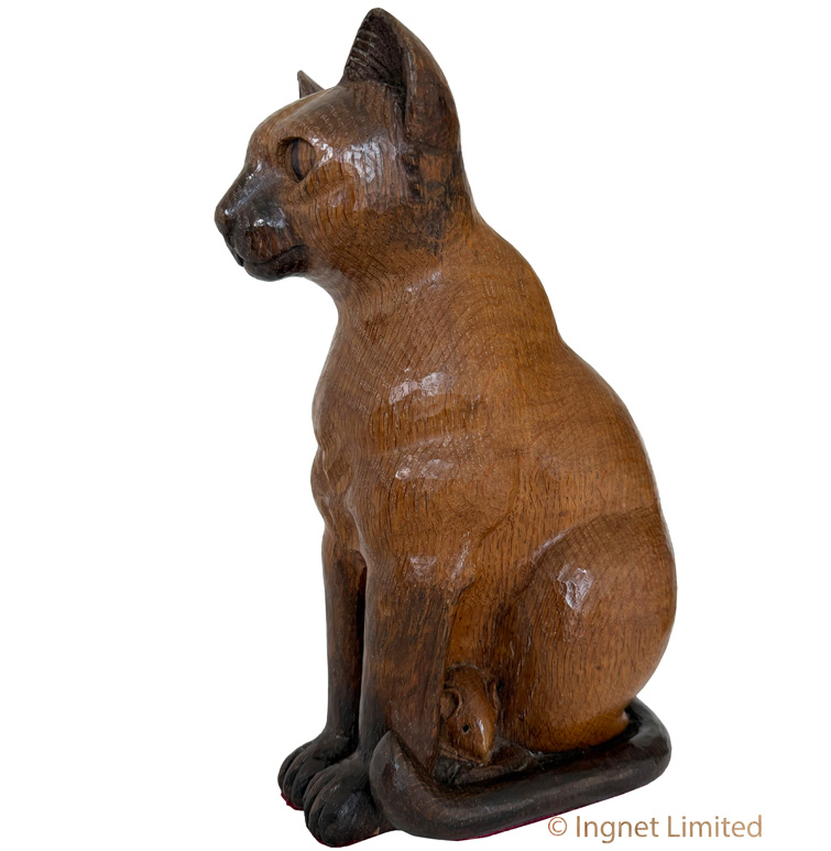 ROBERT MOUSEMAN THOMPSON CARVED OAK SIAMESE CAT