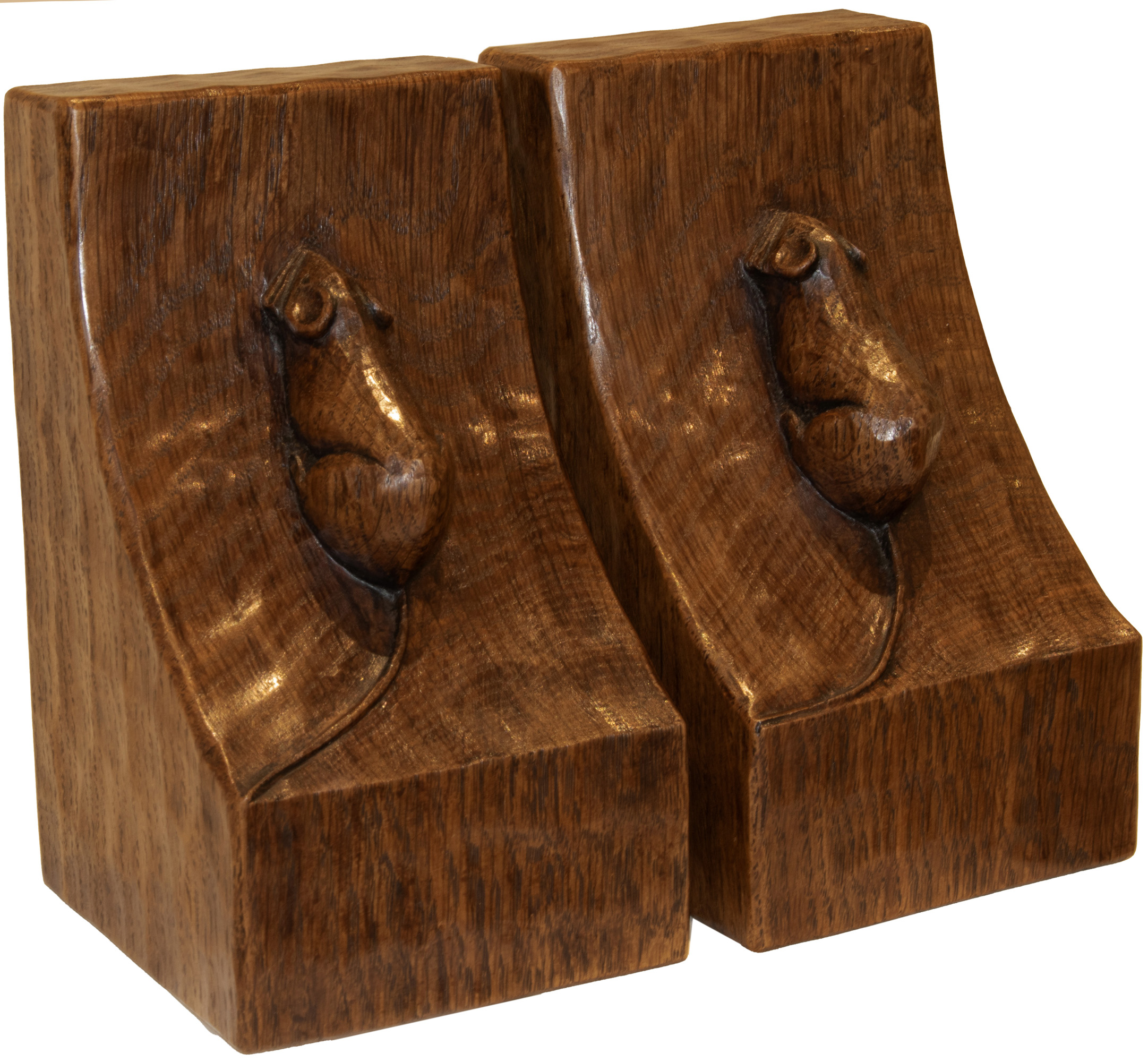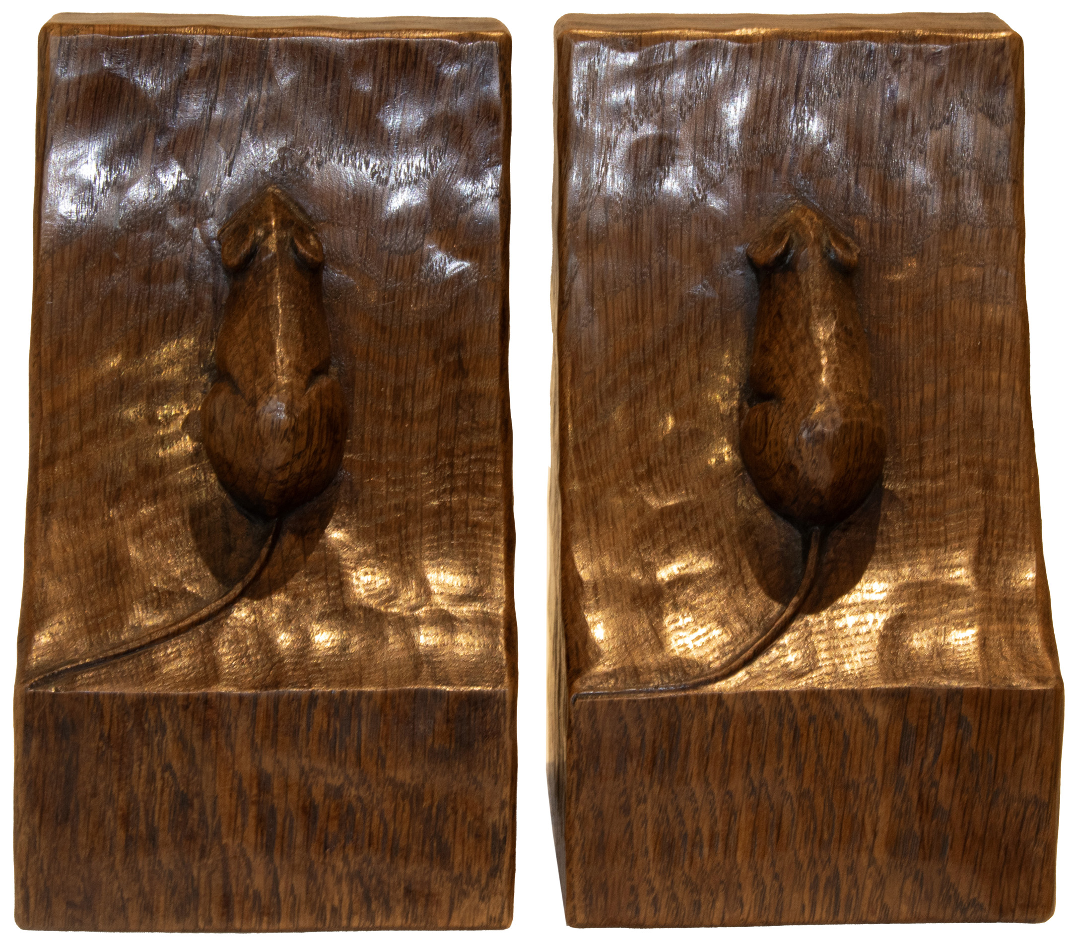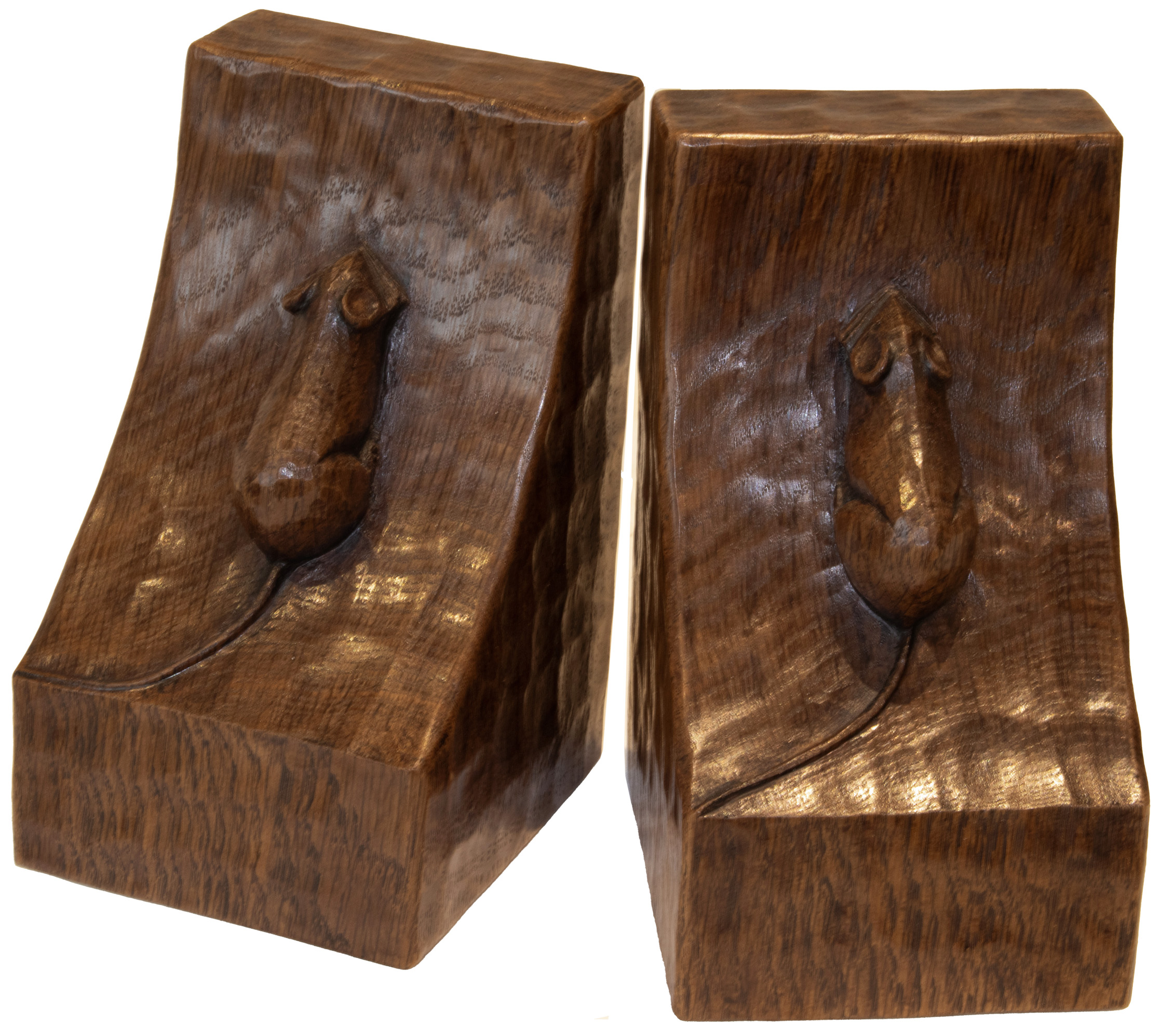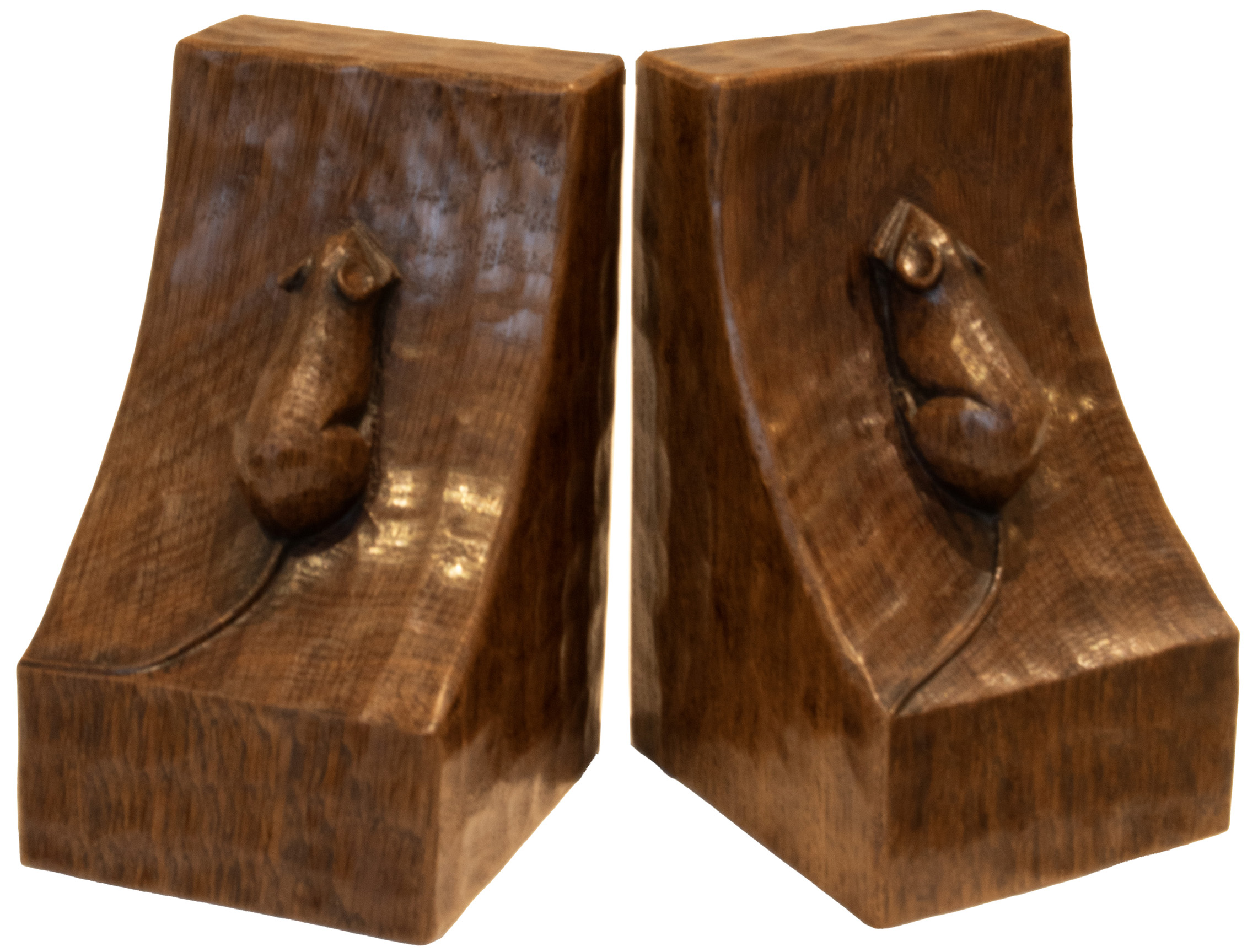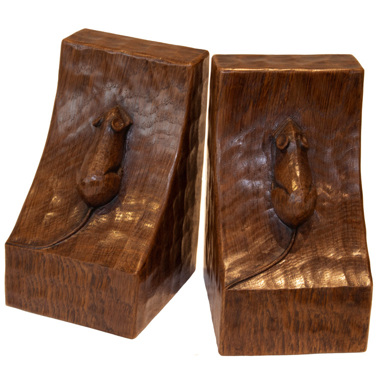 A PAIR OF ROBERT MOUSEMAN THOMPSON OAK BOOKENDS