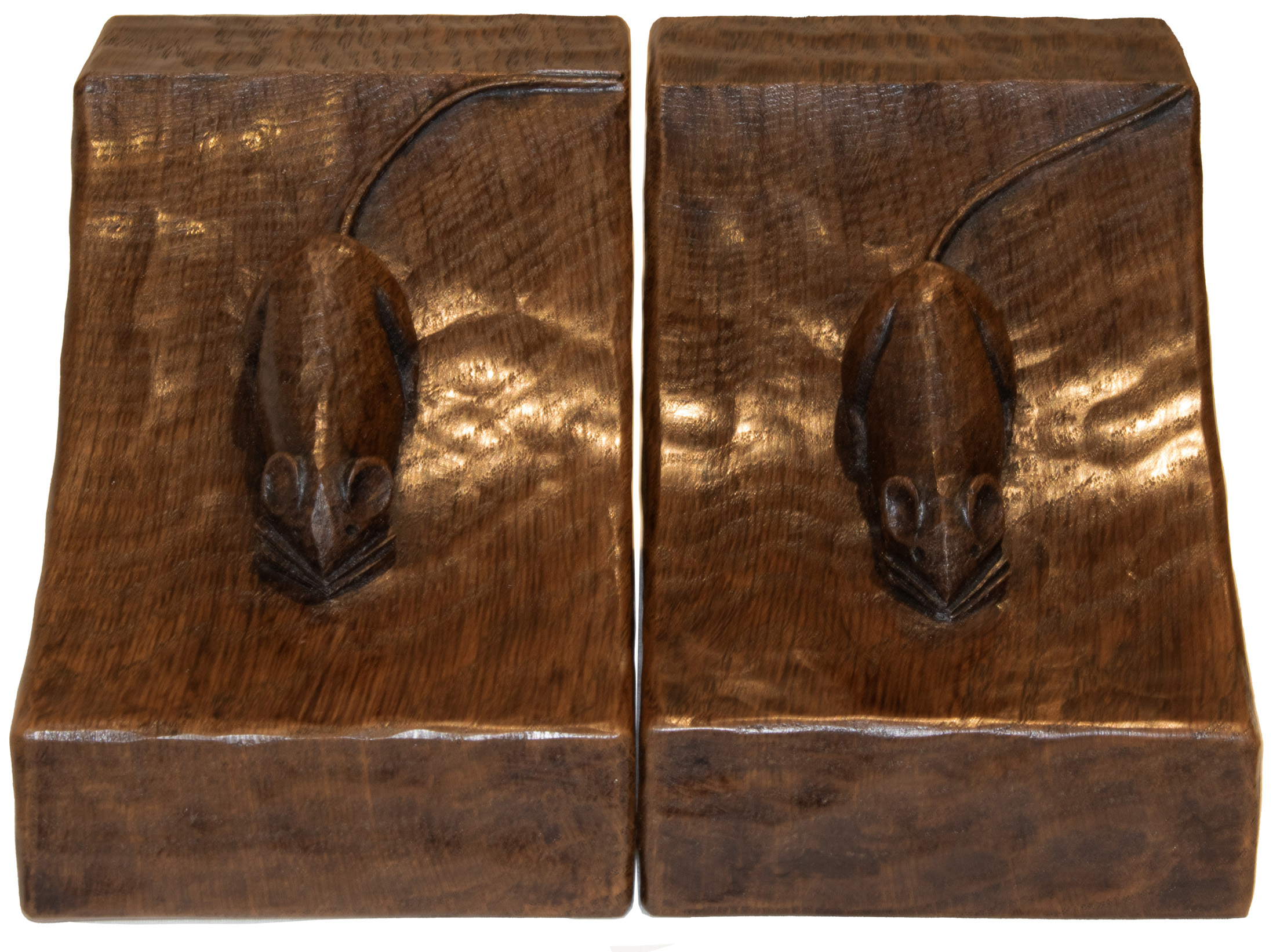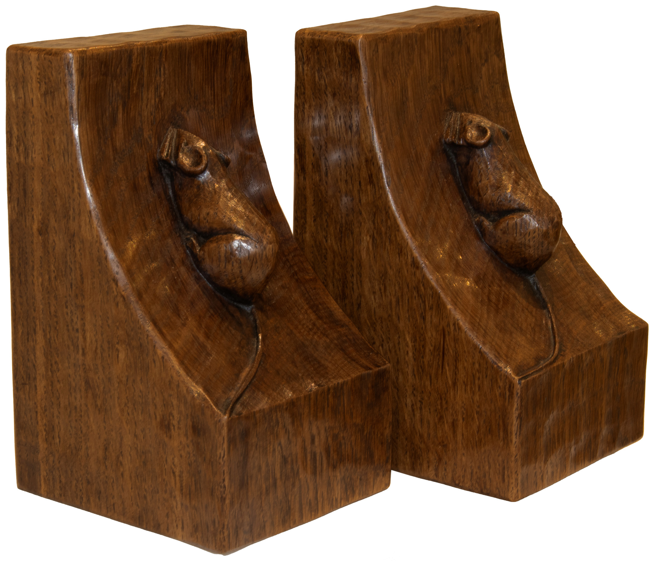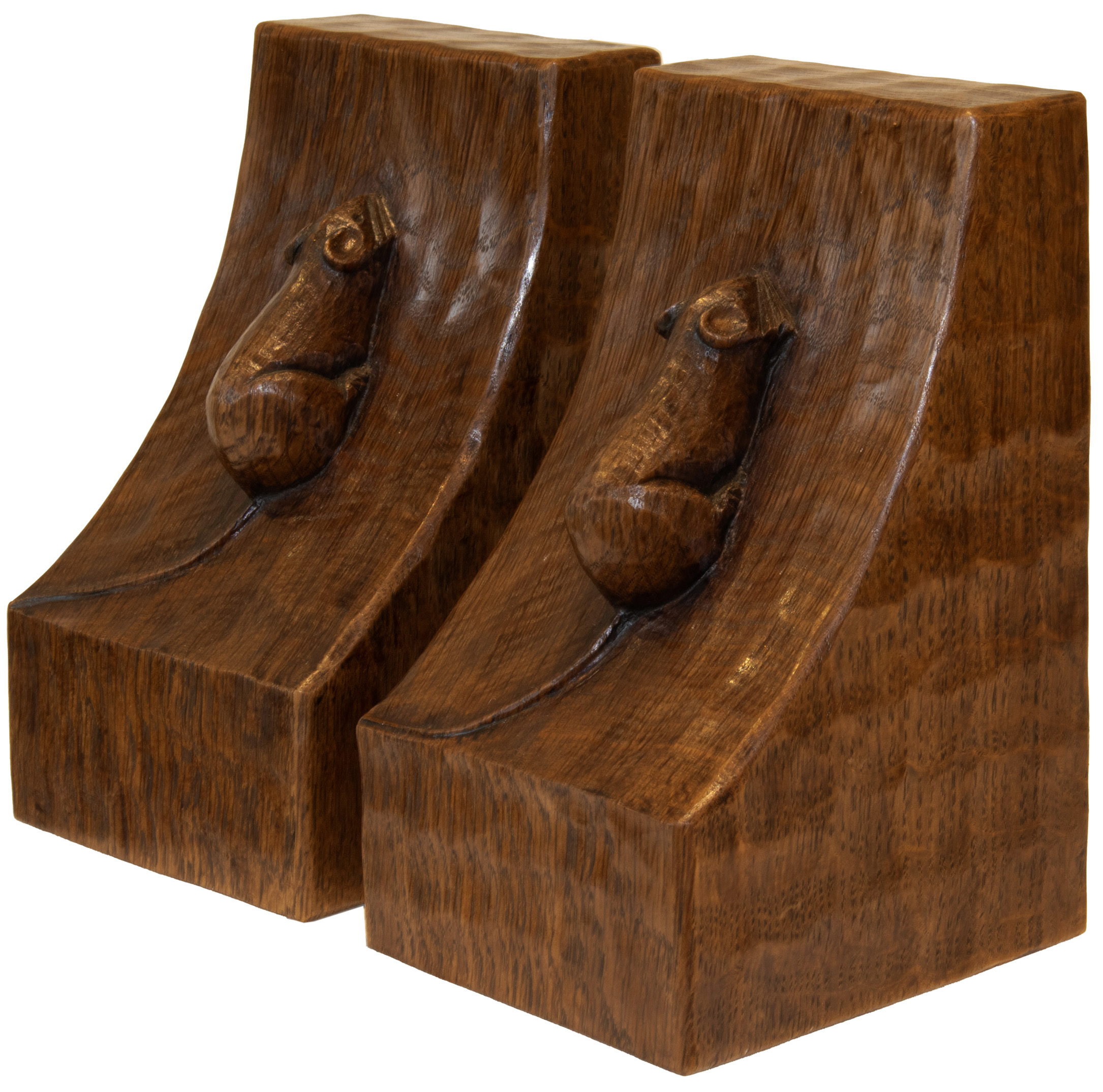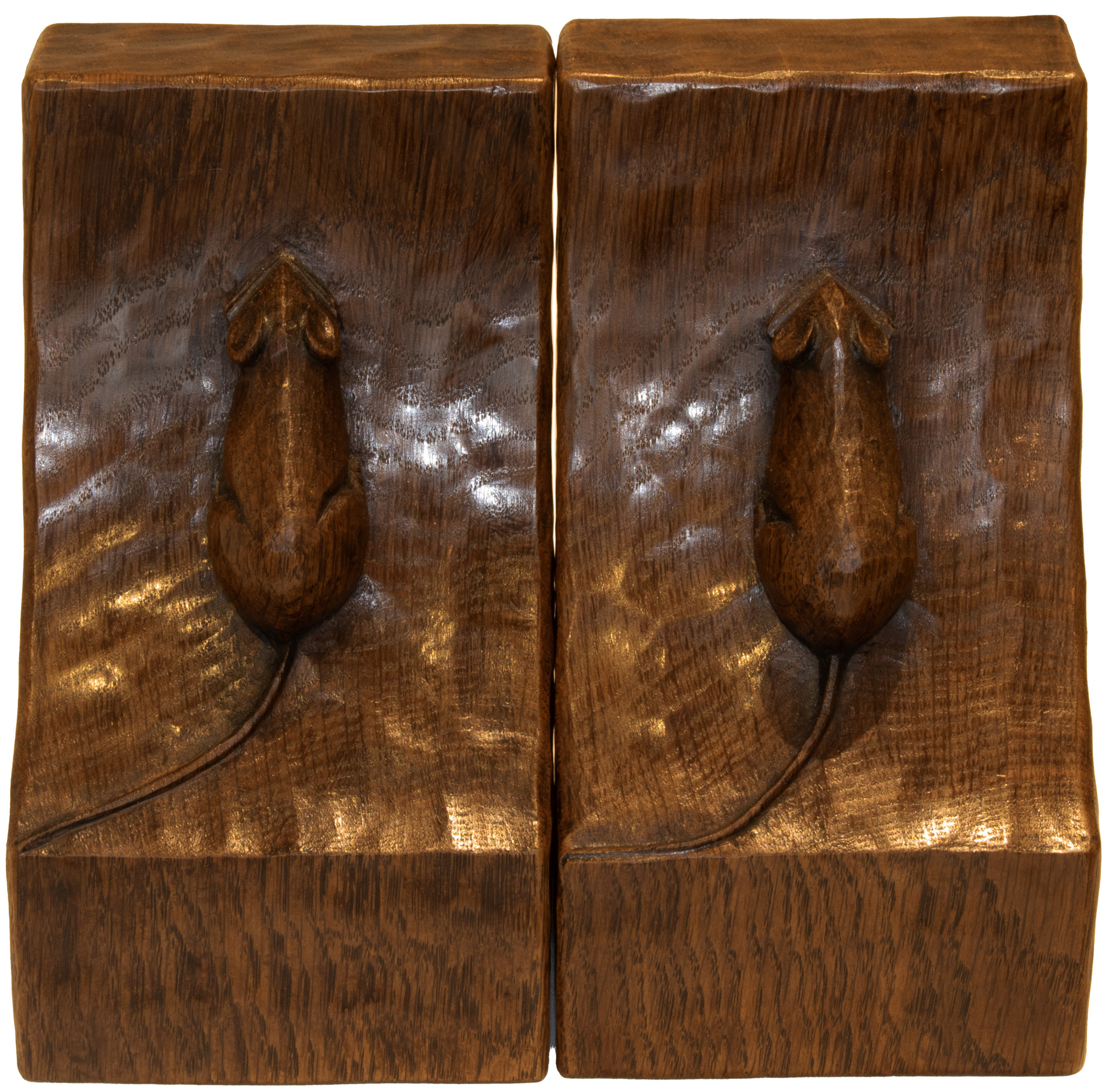 A PAIR OF ROBERT MOUSEMAN THOMPSON OAK BOOKENDS