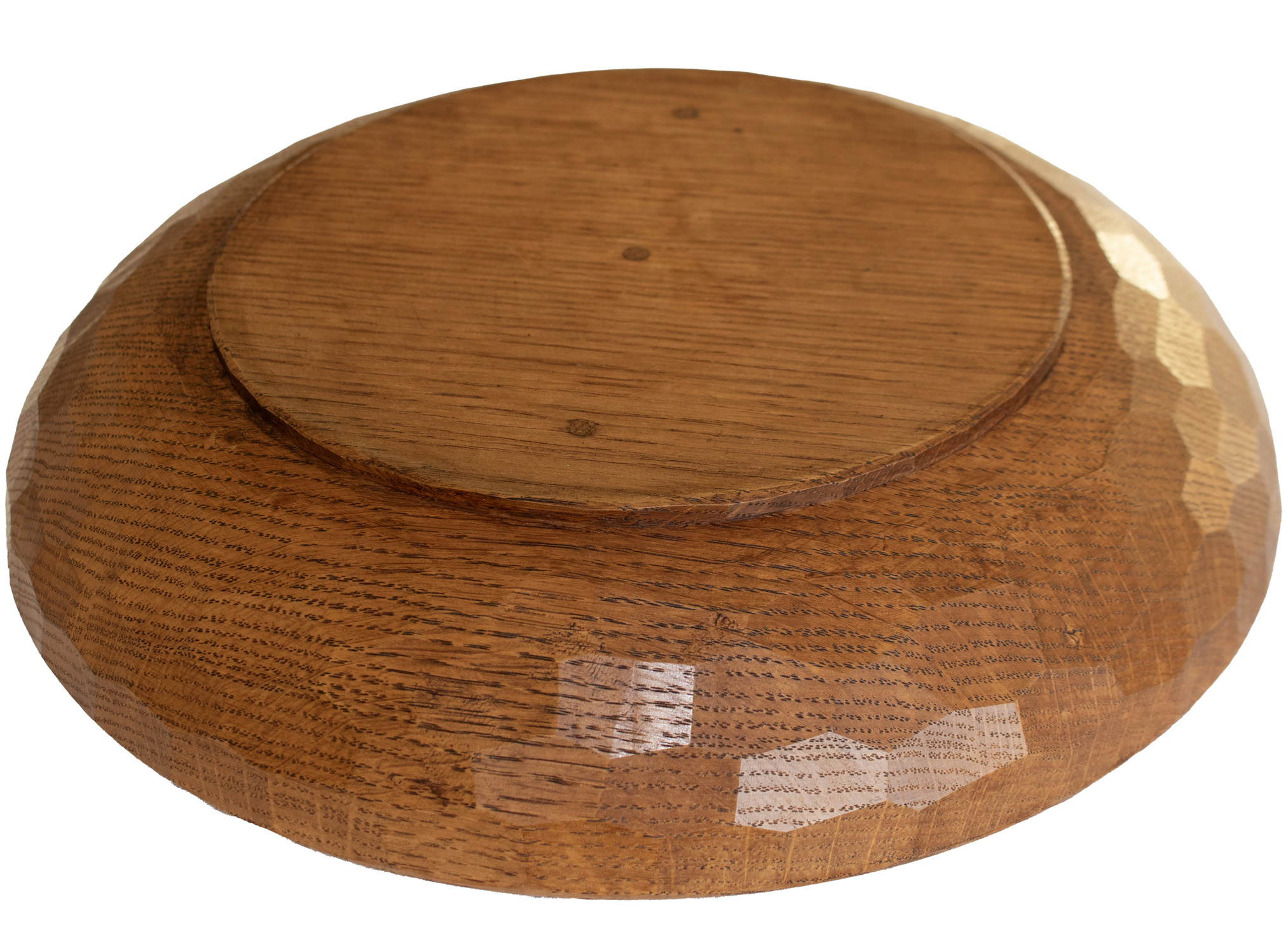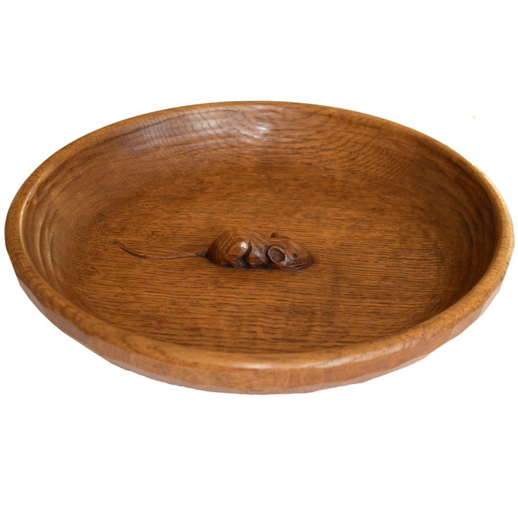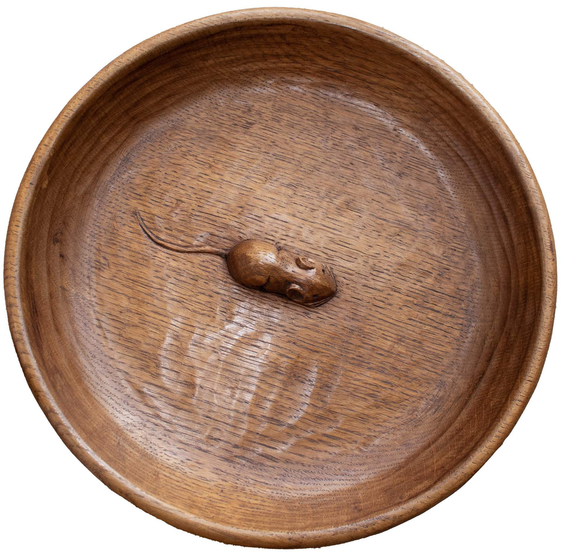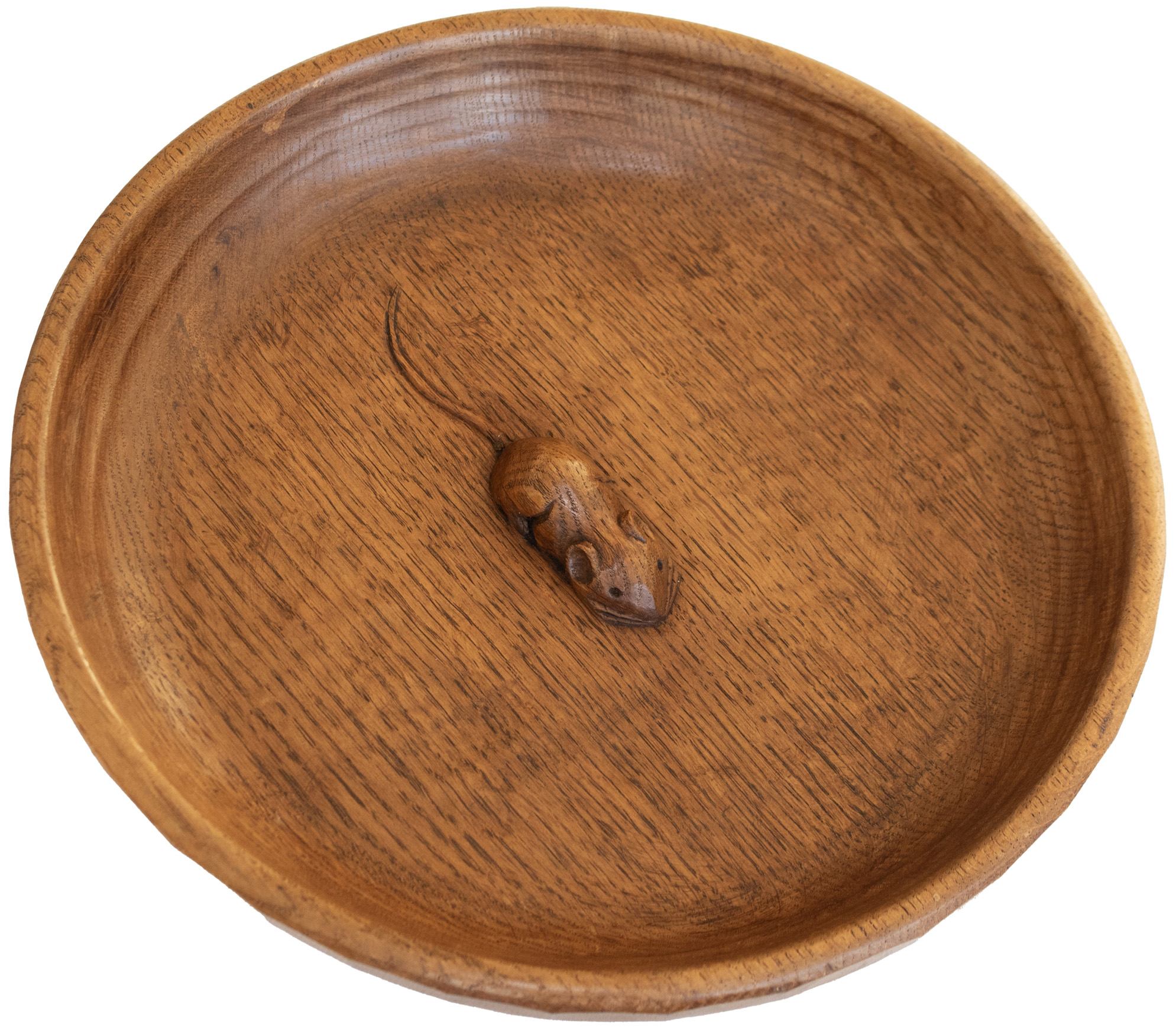 A lovely modern Robert Mouseman Thompson Oak Fruit Bowl with a carved mouse signature in high relief to the centre