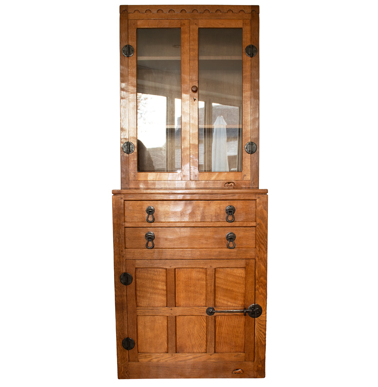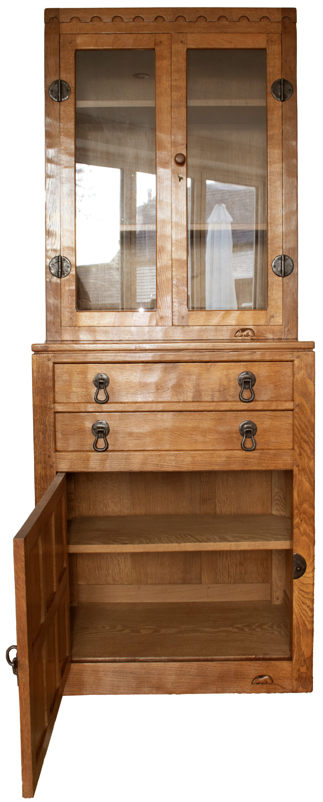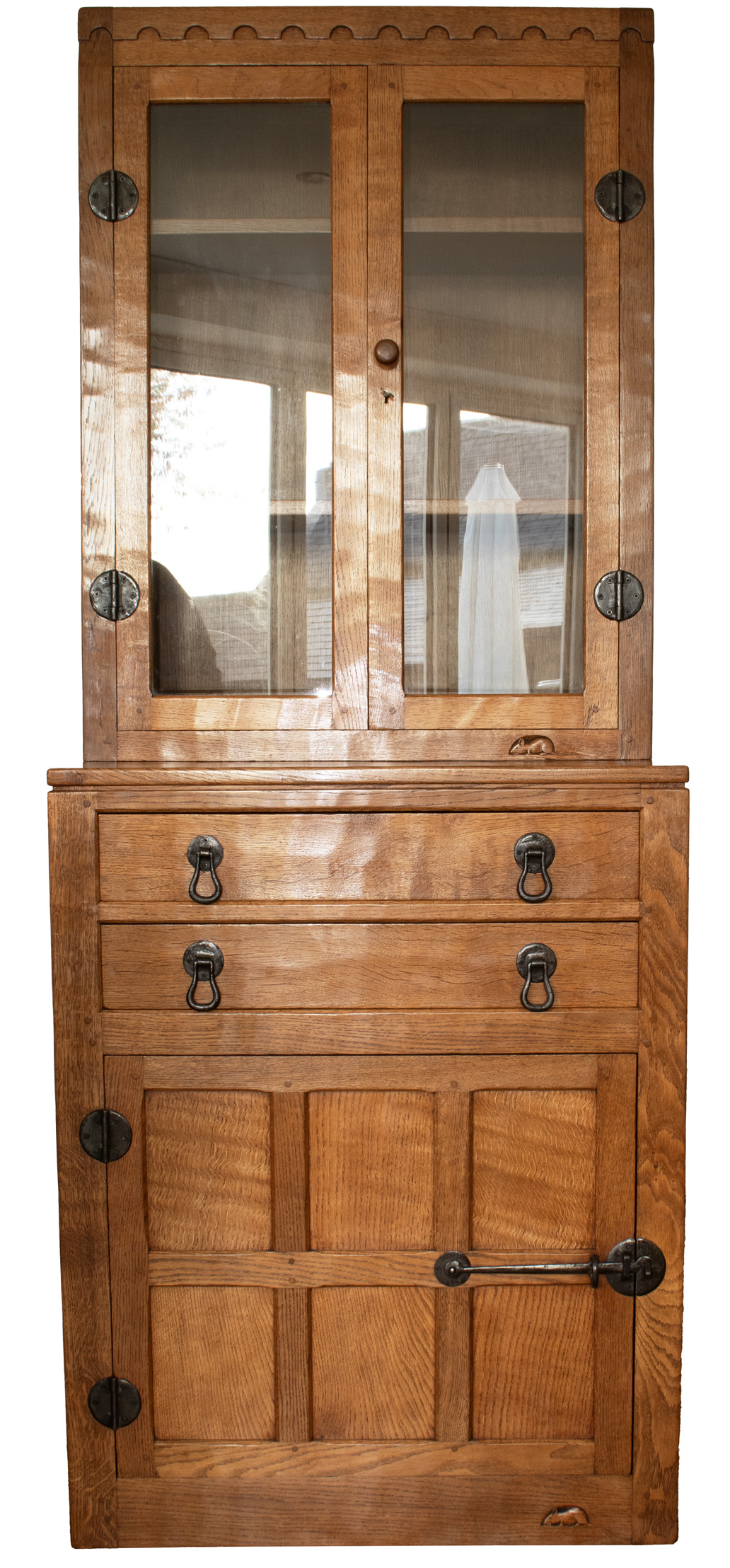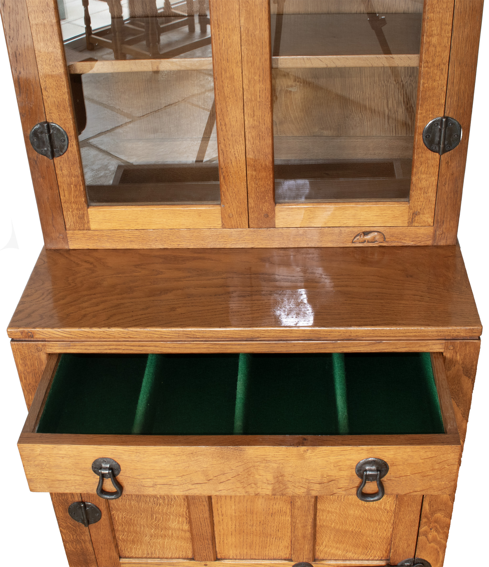 ROBERT MOUSEMAN THOMSON ADZED OAK DISPLAY CUPBOARD/BOOKCASE